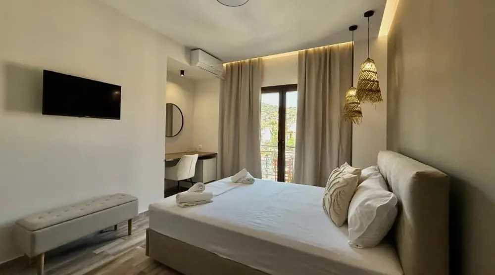 Bequeme Unterkünfte: Das Hotel Eleni in Skópelos bietet Zimmer mit Meerblick, Klimaanlagen, Balkonen, privaten Badezimmern und modernen Annehmlichkeiten wie kostenlosen WLAN, Fernseher und Arbeitsschülern. Praktische Einrichtungen: Die Gäste genießen kostenloses WLAN, eine Lounge, einen Sitzbereich im Freien, einen Zimmerservice, ein Autovermieter und ein Gepäckaufbewahrung. Zusätzliche Dienstleistungen umfassen Haushalt, Frühstücksbuffet und Autovermietung. Hauptort: Ein paar Schritte vom Town Beach von Skopelos und einem 2-minütigen Spaziergang zum Hafen von Skopelos liegt das Hotel 24 Mio. vom Flughafen Skiathos vom Flughafen Skiathos entfernt. Zu den Attraktionen in der Nähe gehören das Folklore Museum Skopelos bei 984 Fuß. Gästezufriedenheit: Sehr bewertet für seinen günstigen Standort, das aufmerksame Personal und ein tadelloses Sauberkeit.
